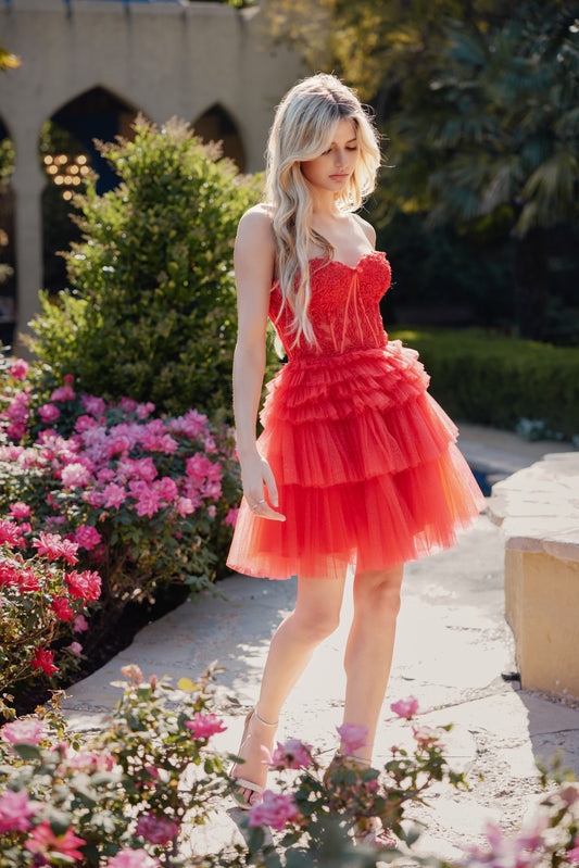 Short Strapless Party Ruffle Skirt Dress