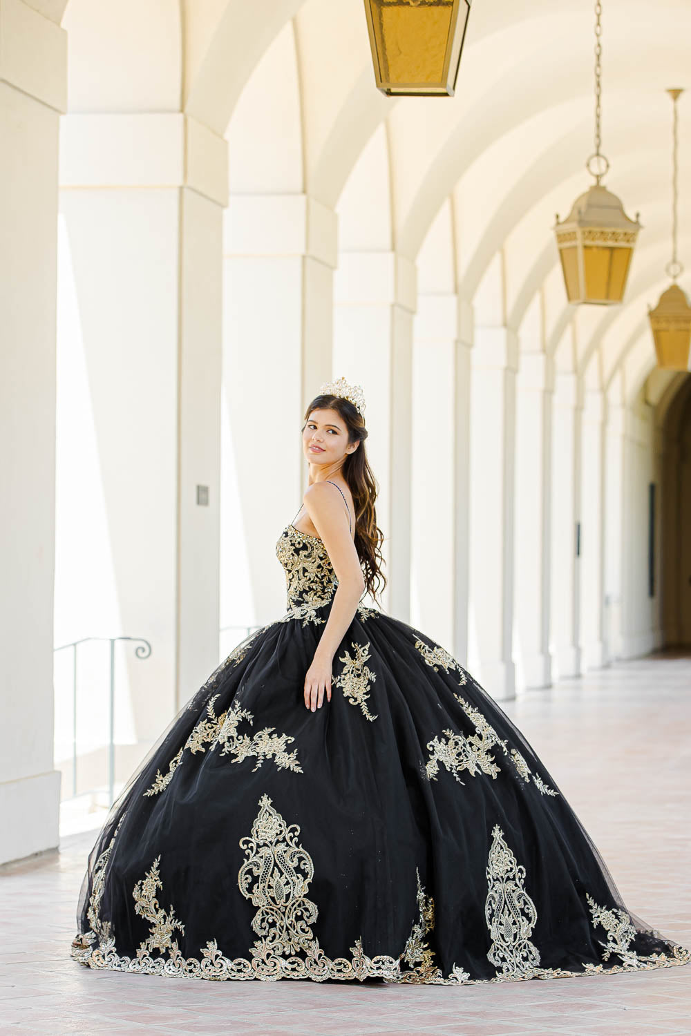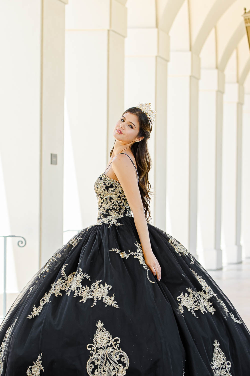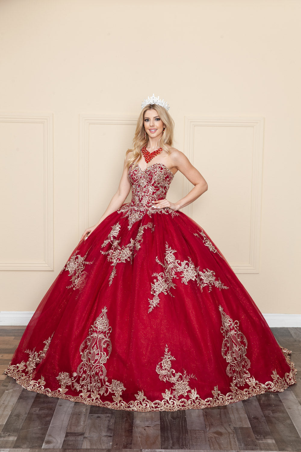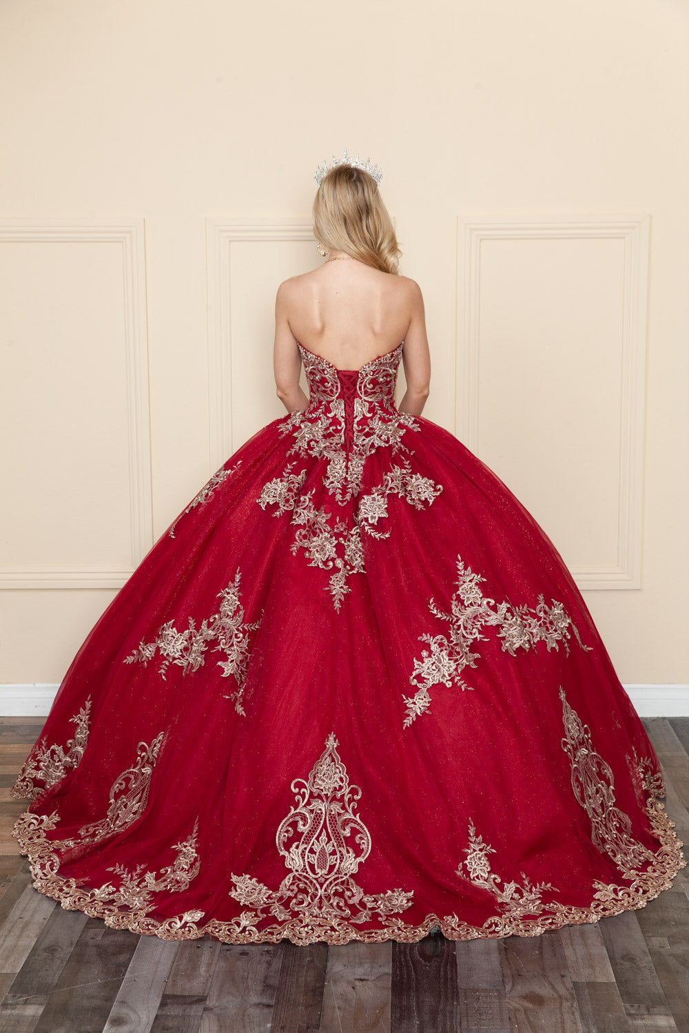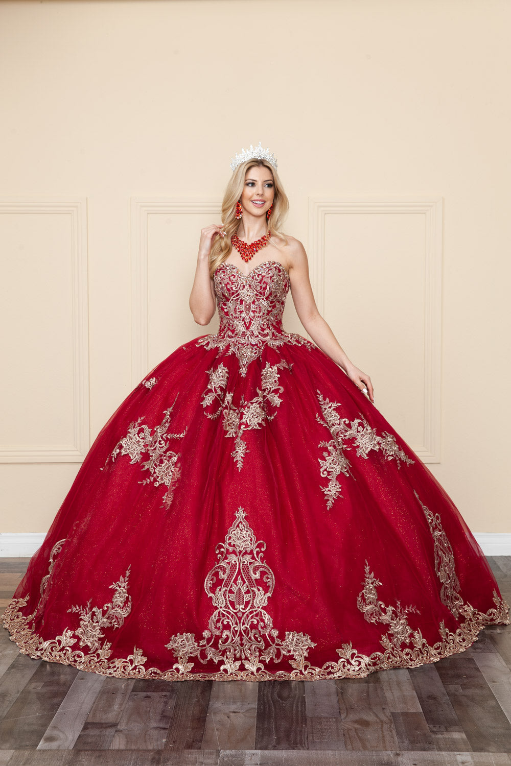 Be ready to make a grand entrance in this show-stopping Quinceanera dress! Complete with a sweetheart bodice with crystal beading and gold embroidered lace details, this princess dress will leave you feeling glitzy and glamorous. A timeless classic with a modern twist, this cape will add a magica touch.