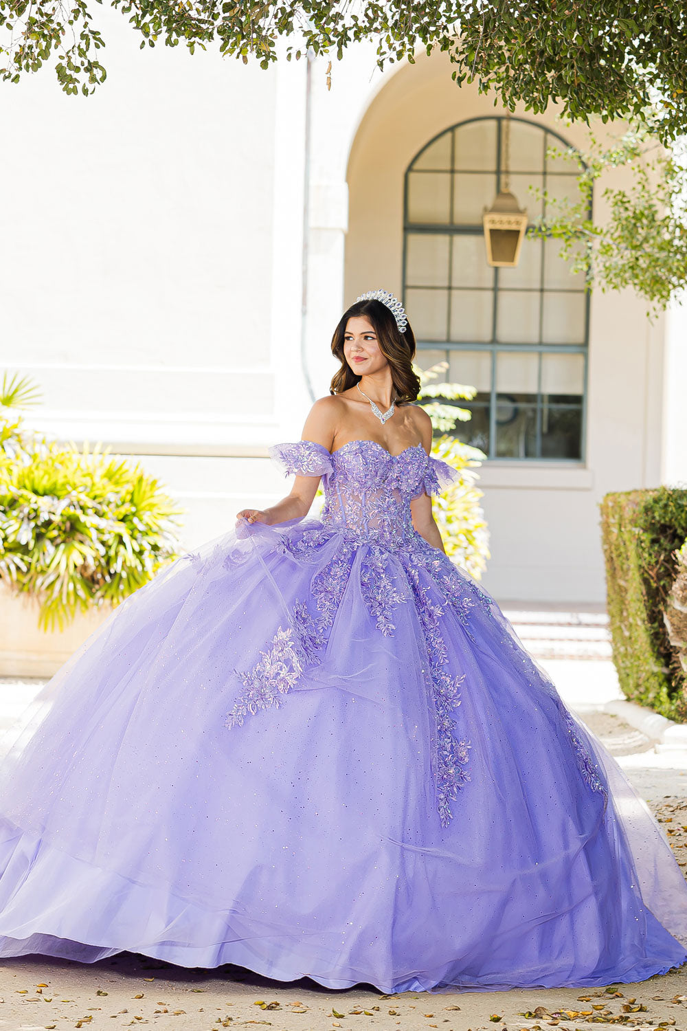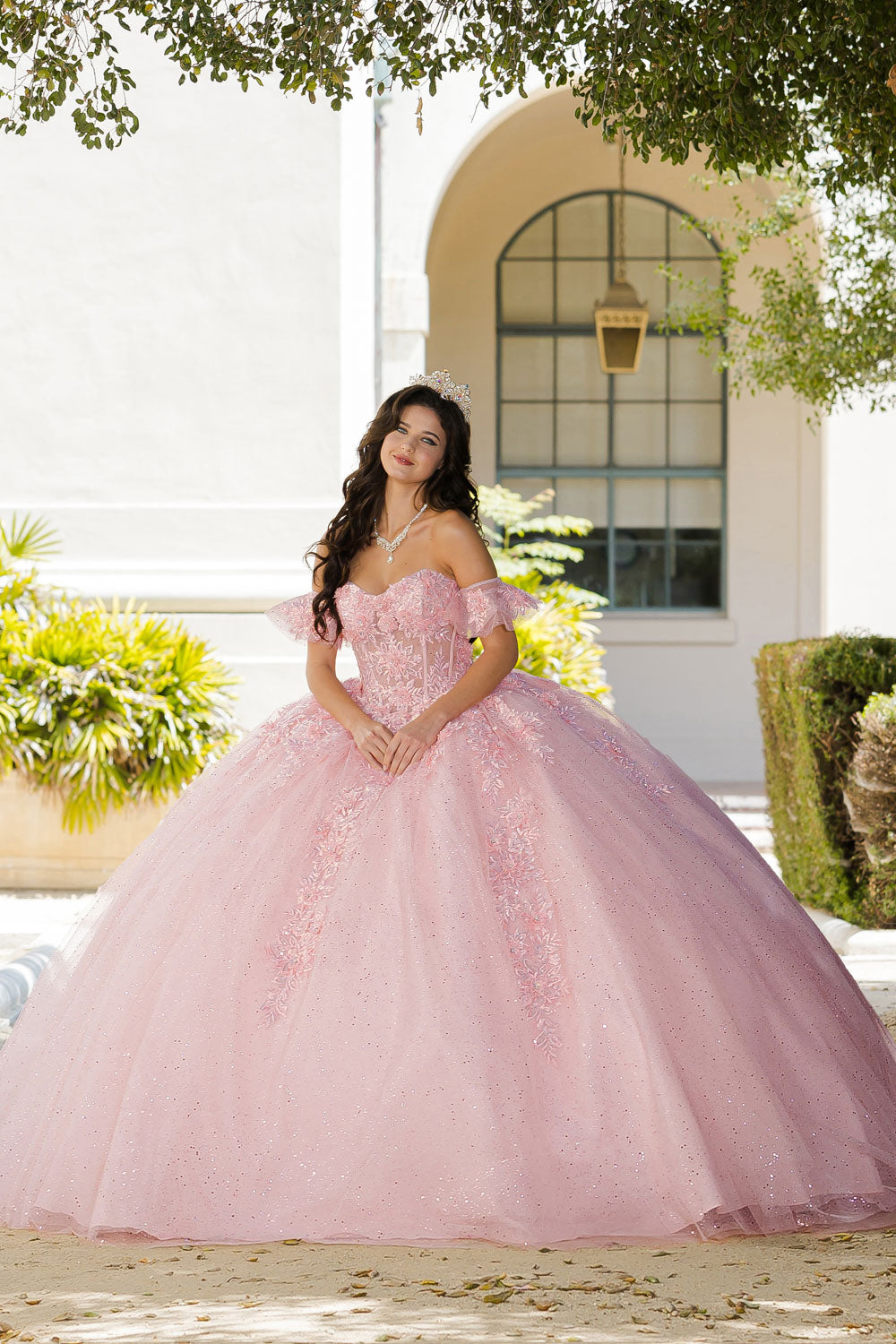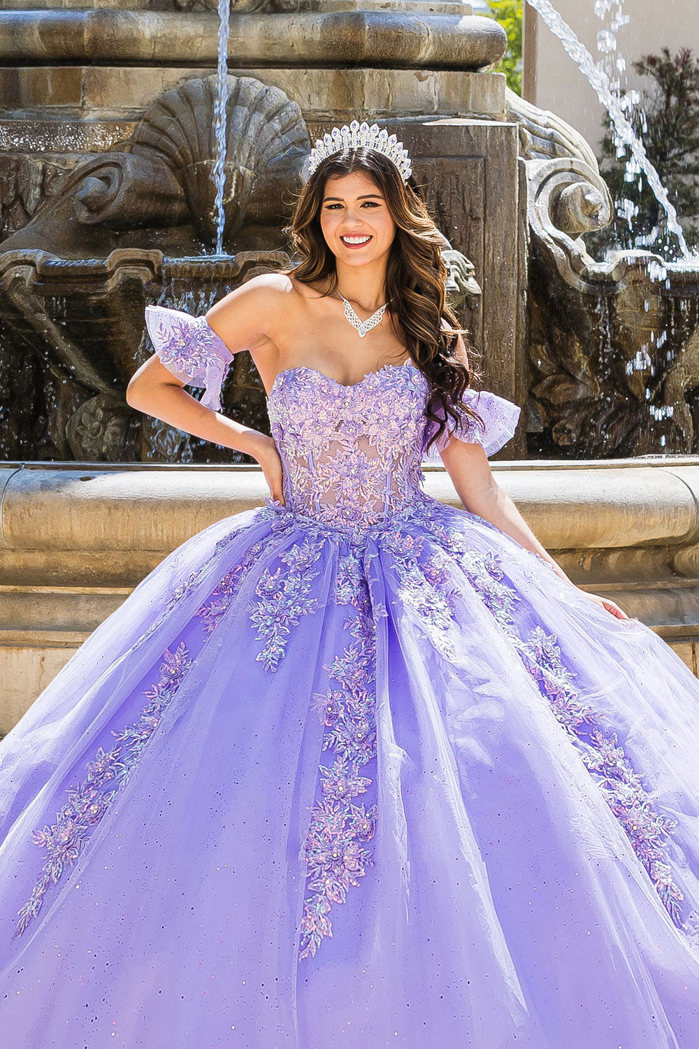 Our Sweetheart Strapless Neckline with Bodice Corset is perfect for any Quinceanera. It features a lace-up back, detachable puffy ruffle sleeve, and a detachable liner for coverage with a lower back hidden zipper and upper back lace-up. The strapless sweetheart neckline is adorned with 3D flowers and glitter